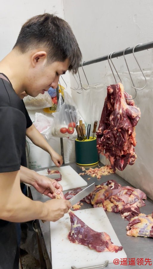 “早上4点起床,开始忙店里的东西,还要去市场。忙到下午2点钟,休息一个半小时,起来后也会自己做牛肉丸,送牛肉丸。另外抽时间写脚本,拍短视频。一天睡4、5个小时,一周七天都这样,自己做生意嘛,没有休息日。”