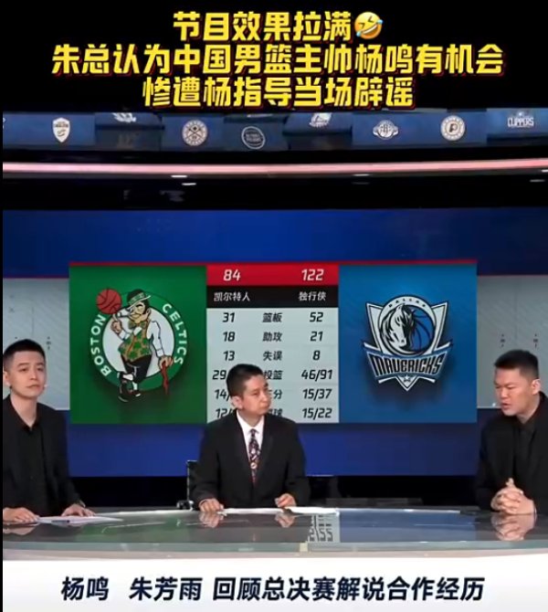 北京时间6月18日消息,中国男篮近日公布了集训名单,由于已经与乔尔杰维奇结束合作,因此主教练一职空缺,暂时由助理教练郭士强代行主教练职责。 广东男篮总经理朱芳雨和辽宁男篮主教练杨鸣一起搭档解说NBA总决赛,其间闲聊时朱芳雨表达了对于杨鸣执教中国男篮的期待。 “昨天公布中国男篮国家队最新一期整个团队的名单,有一个位置是空缺的,反正是没有官宣,其实我也不知道,我瞎猜啊,有没有可能在主教练竞聘的过程中,有没有一个杨导的机会,我是猜测。刚才杨导也说了,中国男篮目前是一个比较低谷的阶段......查看更多