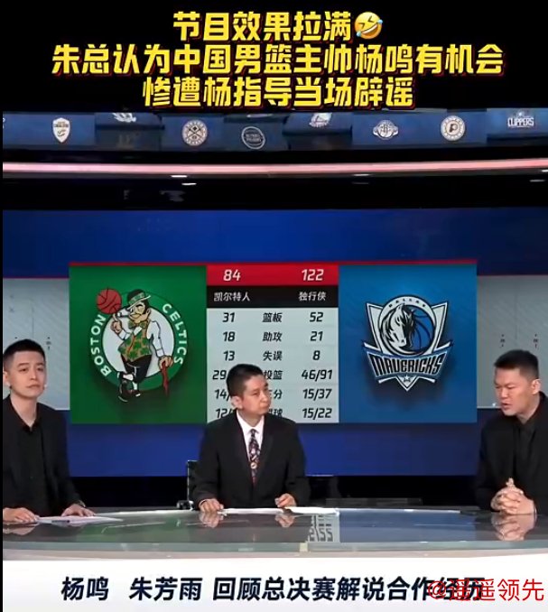 广东男篮总经理朱芳雨和辽宁男篮主教练杨鸣一起搭档解说NBA总决赛,其间闲聊时朱芳雨表达了对于杨鸣执教中国男篮的期待。